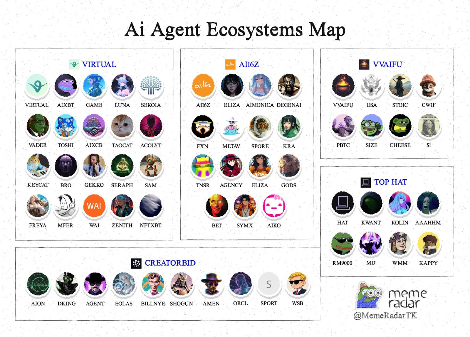 Frameworks: $ARC, $ai16z, $SNAI, $SWARMS, and more.